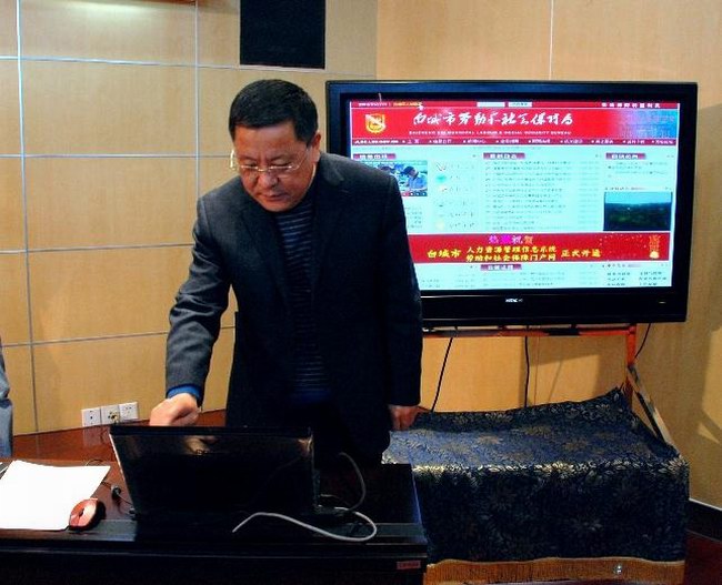 启动仪式上,张宝田副市长点击开通了白城市劳动保障门户网站, 市政府副秘书长张文波点击市“人力资源管理信息系统”。
